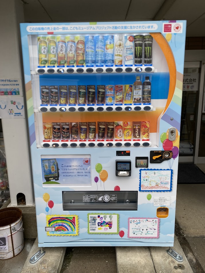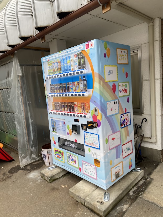 その絵をラッピングしたオリジナル自販機が完成しました。